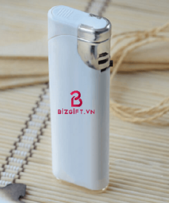 Bật lửa in logo quảng cáo màu trắng đánh lửa bằng IC
