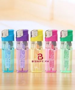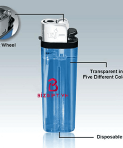 Bật lửa in logo quảng cáo phối nhựa màu xanh trong