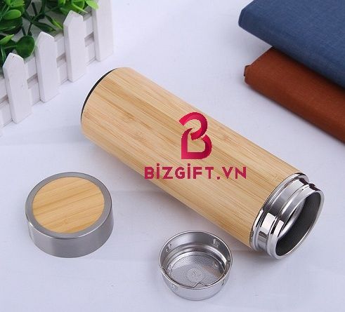 – Tên sản phẩm: Bình giữ nhiệt vỏ bằng tre màu nâu khắc logo theo yêu cầu