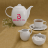 – Kiểu dáng: Bộ ấm trà in logo gồm bộ bình trà kiểu tròn dạng lớn, kiểu dáng đơn giản, bộ bình gồm có 1 bình lớn, 6 tách và dĩa nhỏ. Hoặc khách có thể đặt in logo bộ ấm trà theo mẫu riêng của mình.