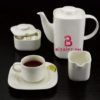– Kiểu dáng: Bộ ấm trà in logo gồm bộ bình trà kiểu tròn loại lớn, có những đường sóng chạy từ vòi rót xướng đáy bình, bộ bình gồm có 1 bình lớn, 6 tách và dĩa lót. Hoặc khách có thể đặt in logo bộ ấm trà theo mẫu riêng của mình.