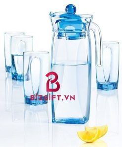 – Kiểu dáng: Bộ sản phẩm gồm bình thủy tinh cao cấp kiểu dáng cao hình lục giác và các ly thủy tinh cao cấp cùng thương hiệu. Có thể in logo công ty lên sản phẩm theo ý thích của khách hàng.