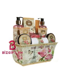 – Bộ sản phẩm gồm: Gel tắm, bọt tắm, muối tắm, xà phòng hoa, tẩy tế bào chết, sữa dưỡng thể, bơ cơ thể, khăn, que massage bằng gỗ.