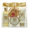 – Bộ sản phẩm gồm: Sữa tắm, gel tạo bọt, tẩy tế bào chết, bọt biển.