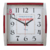 Đồng hồ treo tường in logo hình vuông màu trắng có viền đồng hồ, mặt số và vạch màu đen nổi bật, mặt bên trong màu trắng dễ dàng dùng kỹ thuật in offset nhiều màu thể hiện rõ nét logo và tên doanh nghiệp in trực tiếp trên mặt đồng hồ. Ngoài ra khách hàng còn có nhiều lựa chọn khác về mẫu mã và màu sắc phù hợp với mục đích tặng quà.