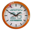 Đồng hồ treo tường in logo viền kiểu mặt trời ấn tượng có thiết kế rất độc đáo với đường viền có nhiều góc cạnh và được sơn màu sắc như cam nổi bật hoặc nâu tinh tế. Mặt đồng hồ được in một màu hoặc nhiều màu theo yêu cầu của khách hàng như màu trắng, màu xanh dương hoặc đỏ, in trực tiếp trên bề mặt đồng hồ.