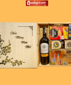- Sản phẩm bên trong: các loại hạt khô cao cấp nhập khẩu từ những quốc gia nổi tiếng trên thế giới và các loại bánh thương hiệu trên thị trường hiện nay. Đi kèm với 1 chai rượu vang nhập khẩu cao cấp.