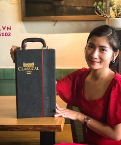 Hộp quà Tết 2020 combo Tết Xuân Phát Tài 07 với thiết kế cực kỳ thanh lịch với màu đen chủ đạo cùng dòng chữ Classical Wine màu vàng đẳng cấp, ngoài ra phần vỏ được được điểm xuyến bởi một đường kẻ màu đỏ bắt mắt cùng những viên kim cương sang trọng