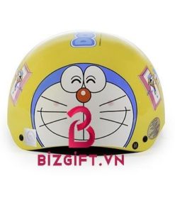 Mũ bảo hiểm dành cho trẻ em kiểu nửa đầu không lưỡi trai có thiết kế đơn giản, sơn nền trắng và xanh dương, thêm vài đường đen là râu mép của chú mèo trông đáng yêu vô cùng, lỗ mũi là cái chấm đỏ là nổi bật cái đầu tròn tròn của Doraemon. Hình ảnh chú mèo máy đến từ tương lai không chỉ được các em thiếu nhi yêu thích mà ngay cả các bạn tuổi teen cũng vô cùng yêu quý. Vì vậy, mũ bảo hiểm in biểu tượng Doraemon sẽ chinh phục được rất nhiều người dùng.