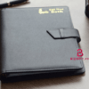 Sổ da in logo bìa còng màu đen gân mịn để hở còng