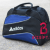 Túi du lịch vải dù màu đen phối xanh lá có tay kéo tiện dụng có thiết kế kiểu chữ nhật đơn giản có 2 ngăn lớn đựng đồ thuận tiện. Chất liệu vải dù màu đen phối xanh nổi bật. Kiểu túi này có bánh xe và tay kéo tiện dụng cho khách hàng sử dụng. Dùng công nghệ thêu một màu xanh lá cây thêu trực tiếp trên vải dù với logo của doanh nghiệp, để khách dùng đi đâu cũng nhận ra thương hiệu của doanh nghiệp.