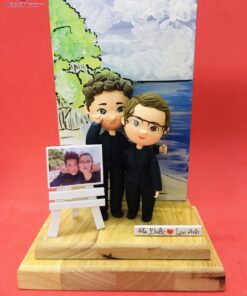 Thiết kế: Tượng Chibi được nặn đắp theo hình ảnh khách hàng yêu cầu, có đế gỗ đỡ tượng và được đặt bên trong hộp quà có mica trong bao bọc.